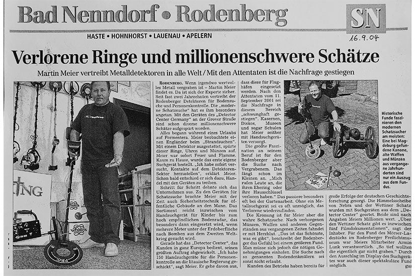 Kurz darauf kaufte sich Martin Meier seinen ersten Detektor – damals aus dem Hause RIMATRON (heute VIKING) aus England. Im nächsten Moment war auch schon die neue Berufung klar: Such- und Bergungsdienst für verlorenen Schmuck und Opas vergrabenes Familiensilber – so die Werbeanzeige in Zeitungen.