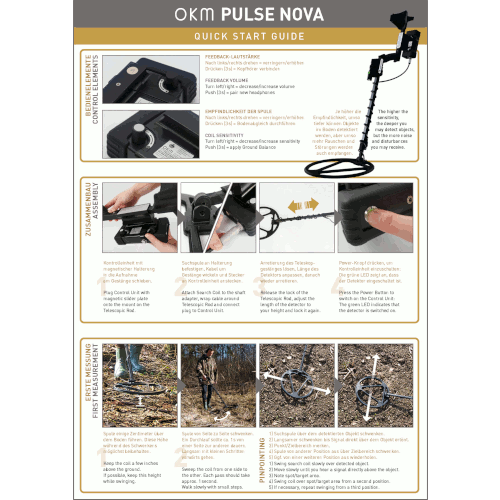 Los detectores de metales PI como el OKM Pulse Nova son perfectos para iniciarse en la aventura de la búsqueda de tesoros gracias a su fácil manejo. También se utilizan para la prospección de oro y son utilizados por los servicios de desactivación de explosivos. El detector de inducción de pulso Pulse Nova ofrece diferentes bobinas de búsqueda, proporcionando un buen rendimiento de detección y profundidad en la búsqueda de oro natural, monedas, joyas y militaria.
